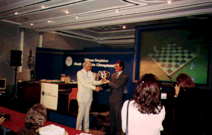 Steve Webb presented Marion Tinsley with the Championship Trophy.