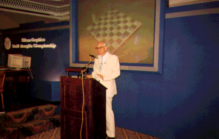 The opening ceremony took place on Sunday August 16, 1992. Many dignitaries were present, including most of the top British chess players. Tony Buzan was the master of ceremonies, and Lord Brockett officially opened the match. We may have had a taste of things to come when Marion, in his opening speech, several times reiterated "I cannot lose"!
